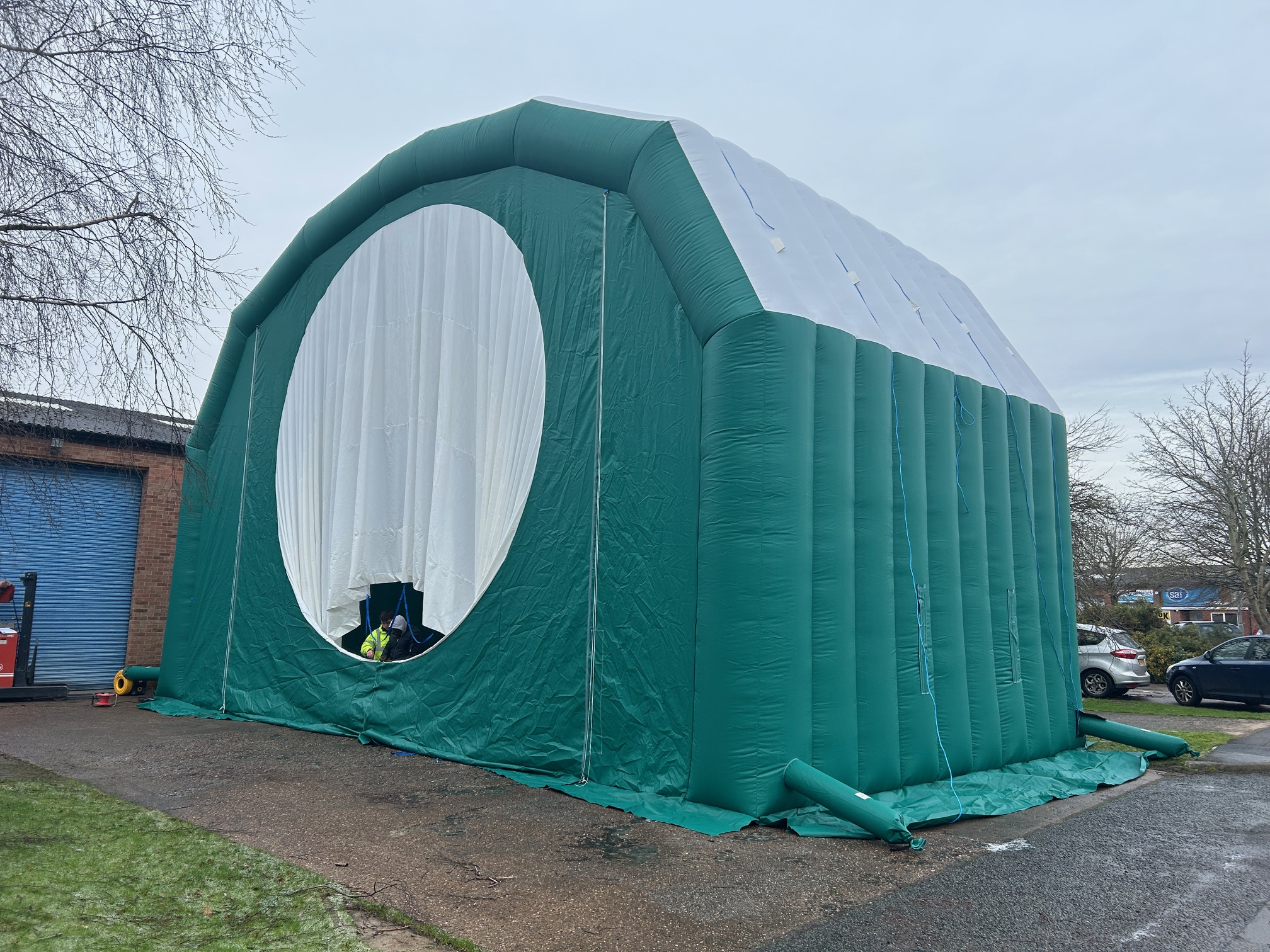 At Industrial Inflatables, we design and manufacture bespoke inflatable repair tents in the UK. Whether you need a single turbine shelter or a full mobile repair facility, our team can provide a turnkey solution — from CAD design to manufacture and installation.
